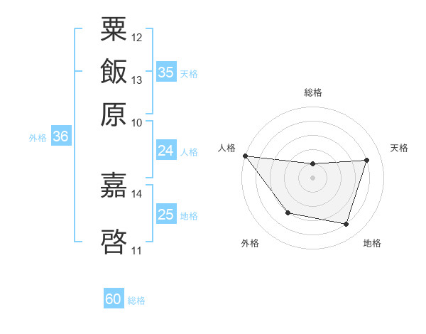 粟飯原 嘉啓さんの総格は60画の1点!