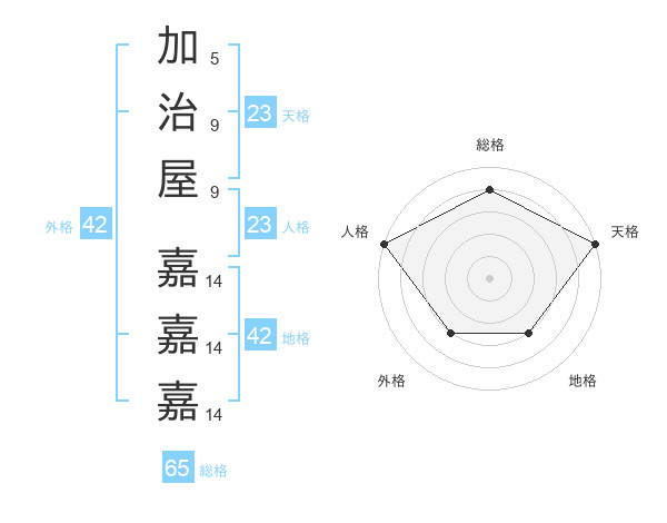 加治屋 嘉嘉嘉さんの天格は23画の5点