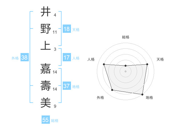 井野上 嘉壽美さんを姓名の画数から五運を鑑定