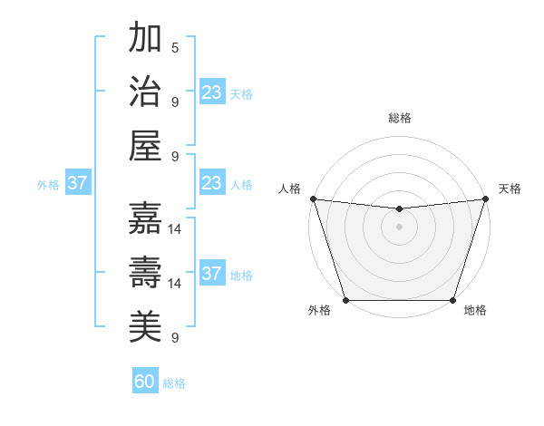 加治屋 嘉壽美さんの外格は37画の5点