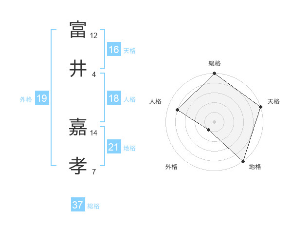 富井 嘉孝さんを姓名の画数から五運を鑑定