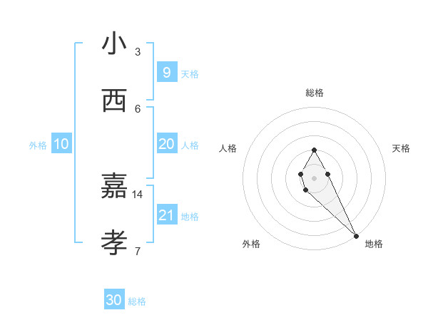 小西 嘉孝さんを姓名の画数から五運を鑑定