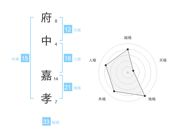 府中 嘉孝さんの総格は33画の4点!