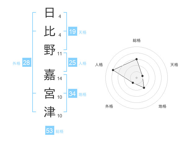 日比野 嘉宮津さんを姓名の画数から五運を鑑定