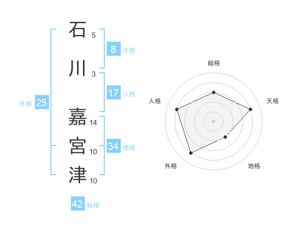 石川 嘉宮津さんを姓名の画数から五運を鑑定