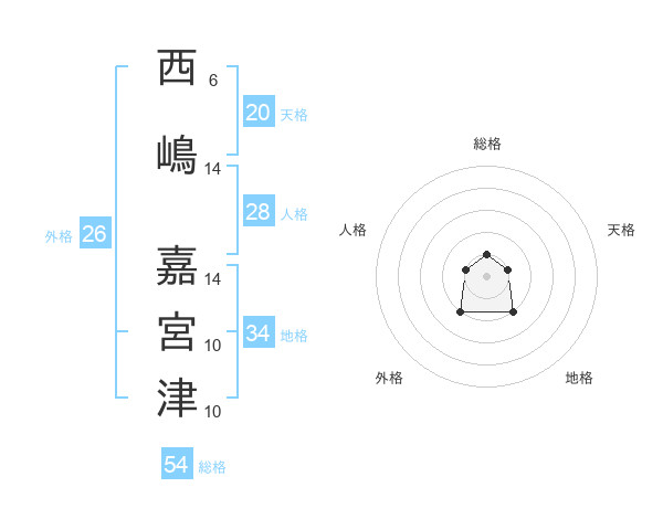 西嶋 嘉宮津さんの総格は54画の1点!