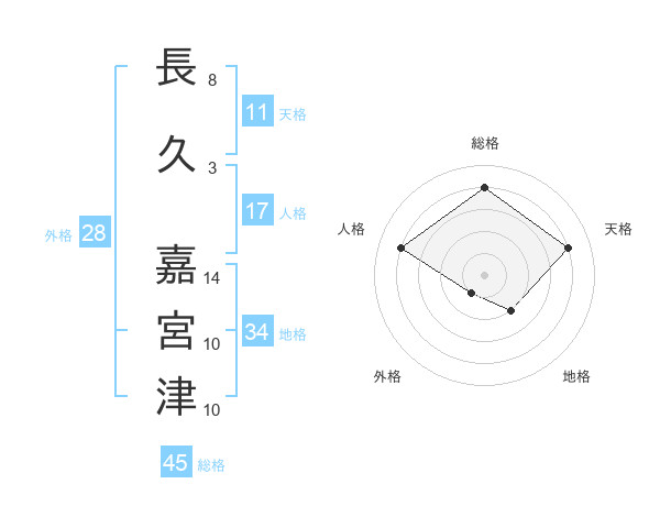 長久 嘉宮津さんを姓名の画数から五運を鑑定