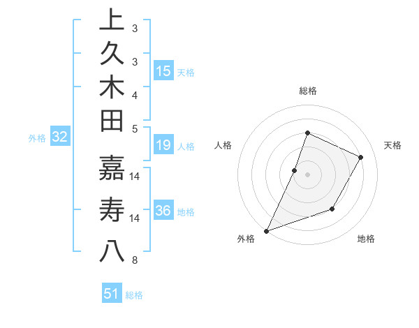 上久木田 嘉寿八さんを姓名の画数から五運を鑑定