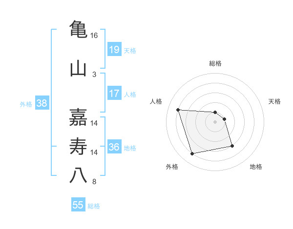 亀山 嘉寿八さんの外格は38画の4点!