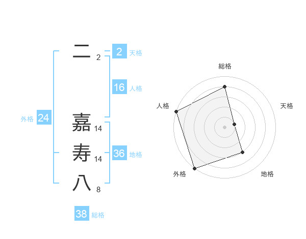 二 嘉寿八さんの総格は38画の4点!