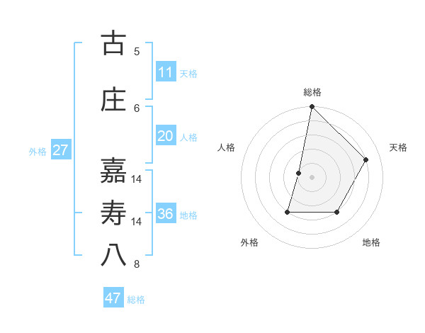 古庄 嘉寿八さんを姓名の画数から五運を鑑定