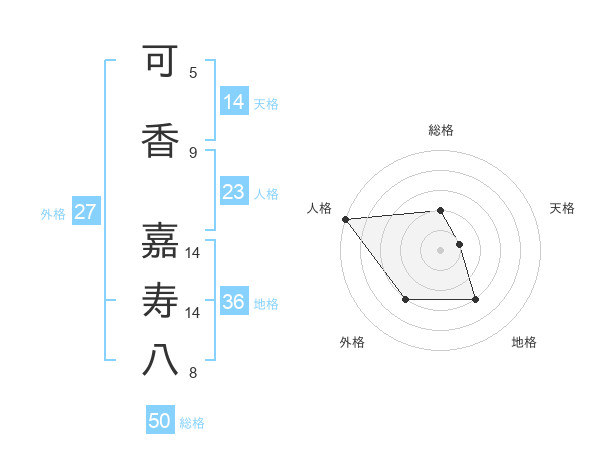 可香 嘉寿八さんの総格は50画の2点!