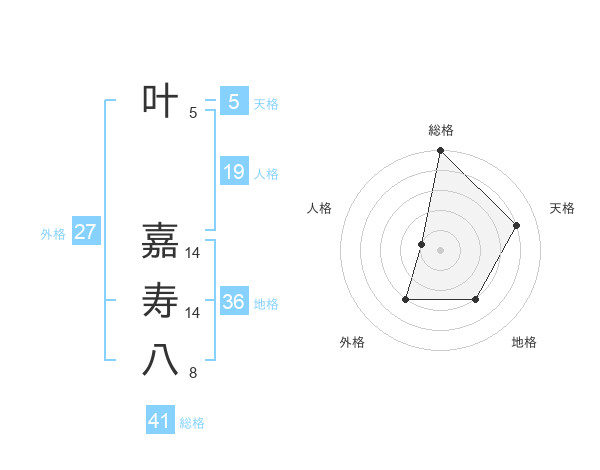 叶 嘉寿八さんの総格は41画の5点!