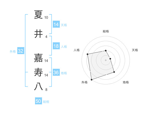 夏井 嘉寿八さんの総格は50画の2点!