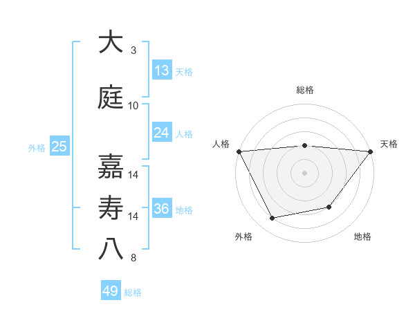 大庭 嘉寿八さんを姓名の画数から五運を鑑定