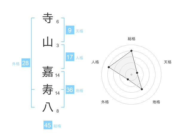 寺山 嘉寿八さんの総格は45画の4点!