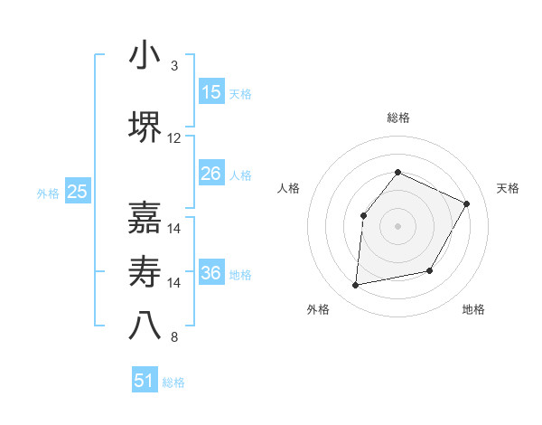 小堺 嘉寿八さんを姓名の画数から五運を鑑定