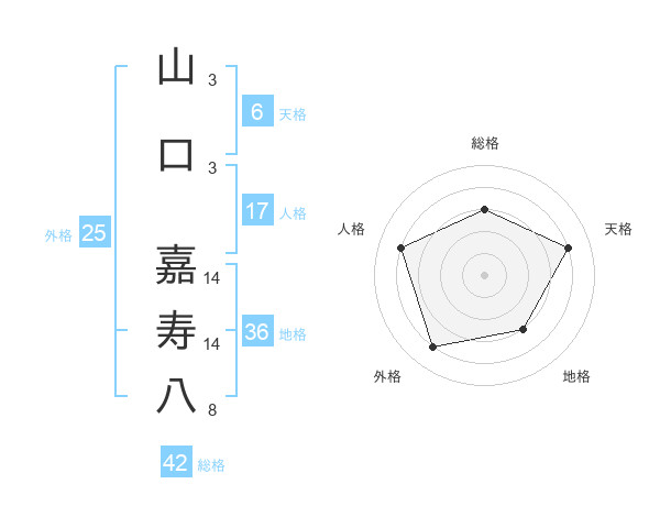 山口 嘉寿八さんを姓名の画数から五運を鑑定