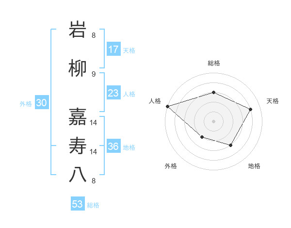 岩柳 嘉寿八さんを姓名の画数から五運を鑑定