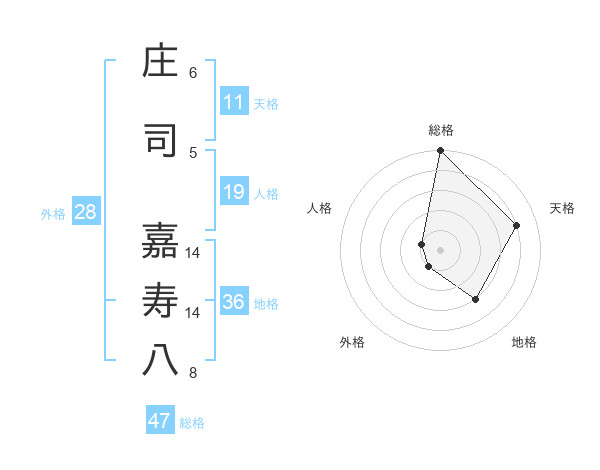 庄司 嘉寿八さんの総格は47画の5点!