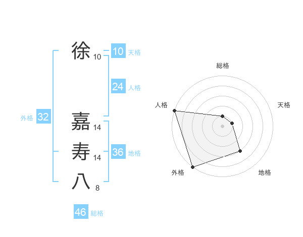 徐 嘉寿八さんを姓名の画数から五運を鑑定