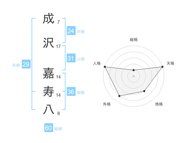 成沢 嘉寿八さんの天格は24画の5点!