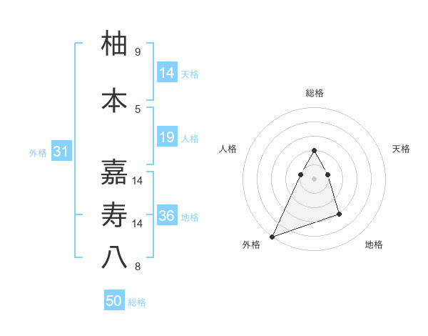 柚本 嘉寿八さんを姓名の画数から五運を鑑定