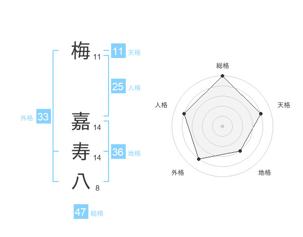 梅 嘉寿八さんを姓名の画数から五運を鑑定