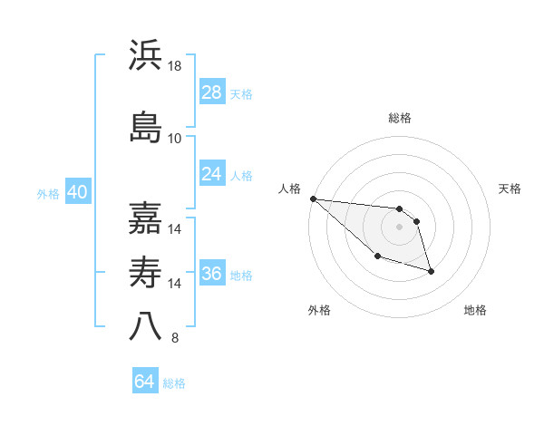 浜島 嘉寿八さんの人格は24画の5点!