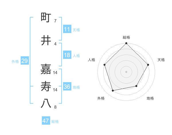 町井 嘉寿八さんを姓名の画数から五運を鑑定