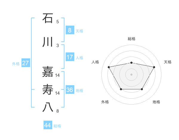 石川 嘉寿八さんの総格は44画の2点