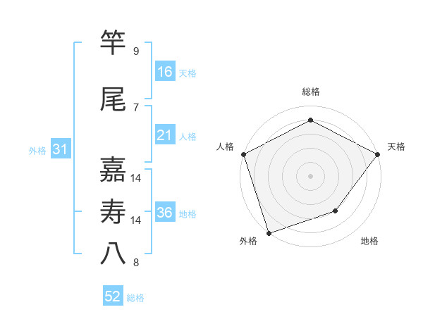 竿尾 嘉寿八さんの外格は31画の5点!