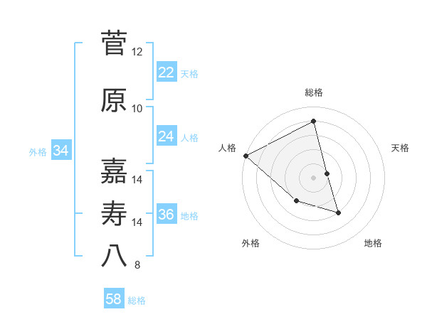 菅原 嘉寿八さんを姓名の画数から五運を鑑定