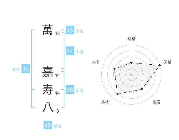 萬 嘉寿八さんの外格は35画の4点!