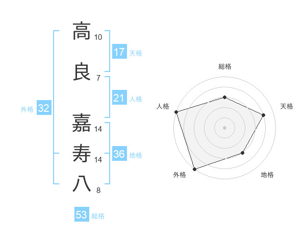 高良 嘉寿八さんの総格は53画の3点!
