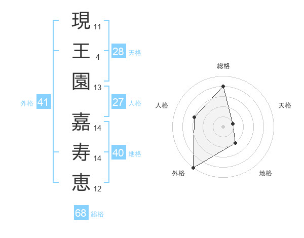 現王園 嘉寿恵さんを姓名の画数から五運を鑑定