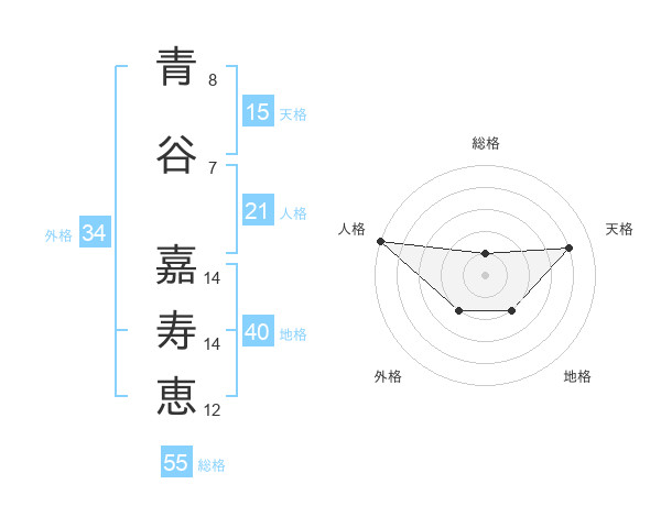 青谷 嘉寿恵さんの総格は55画の1点!