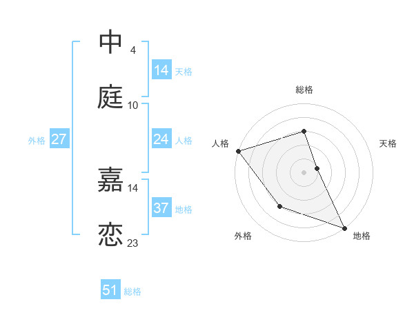 中庭 嘉恋さんの総格は51画の3点!