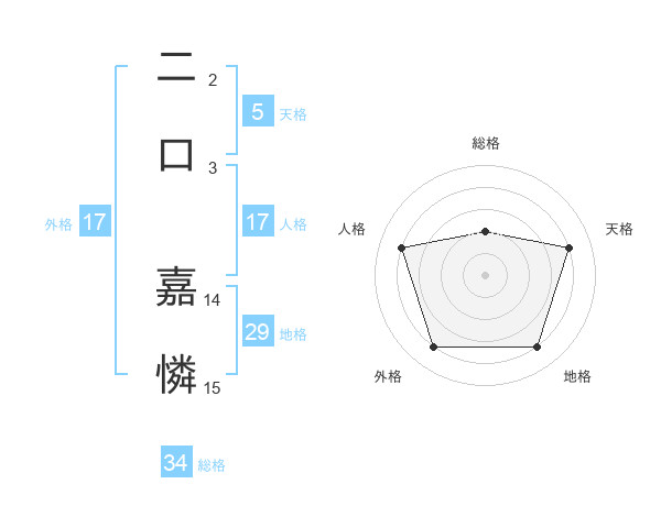 二口 嘉憐さんを姓名の画数から五運を鑑定
