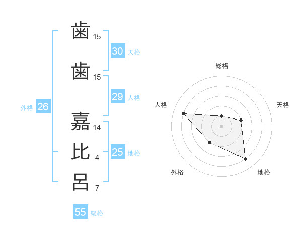歯歯 嘉比呂さんの外格は26画の2点!