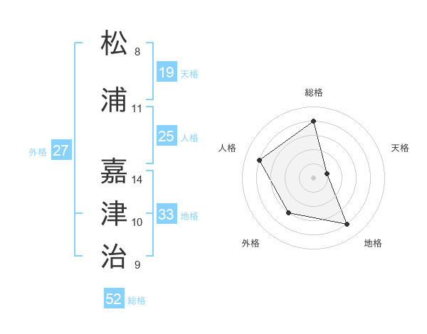 松浦 嘉津治さんを姓名の画数から五運を鑑定