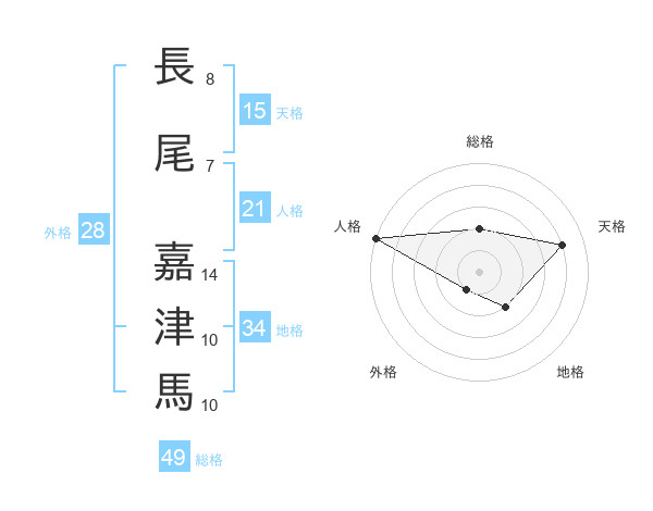 長尾 嘉津馬さんの総格は49画の2点!