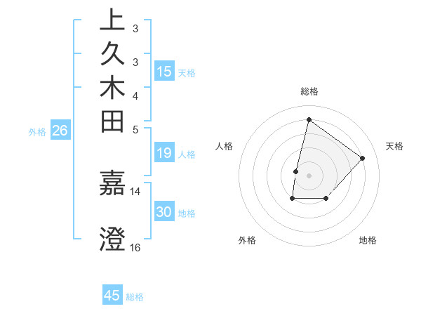 上久木田 嘉澄さんの総格は45画の4点!
