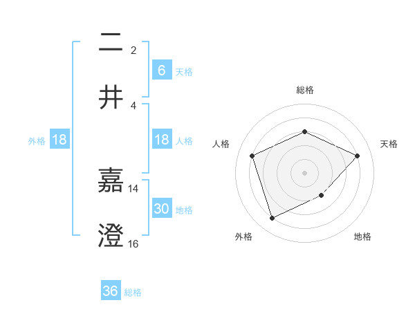 二井 嘉澄さんの天格は6画の4点!