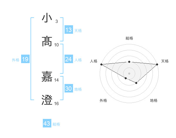 小髙 嘉澄さんの総格は43画の2点!