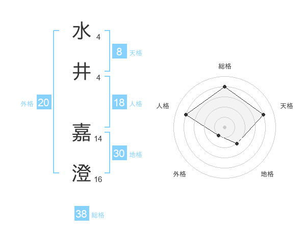 水井 嘉澄さんを姓名の画数から五運を鑑定