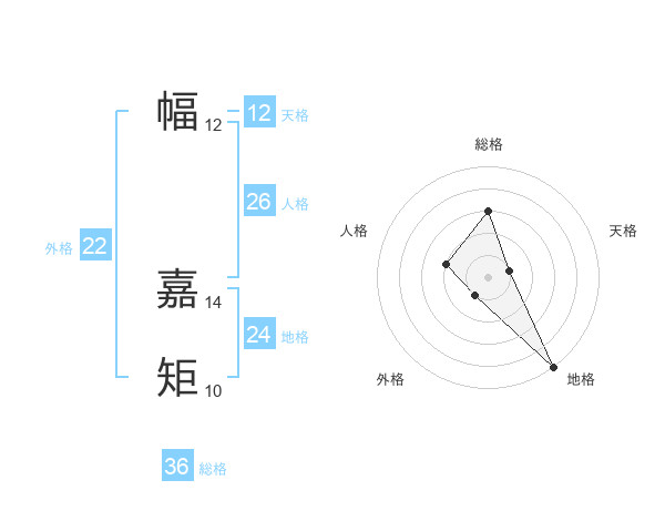 幅 嘉矩さんを姓名の画数から五運を鑑定