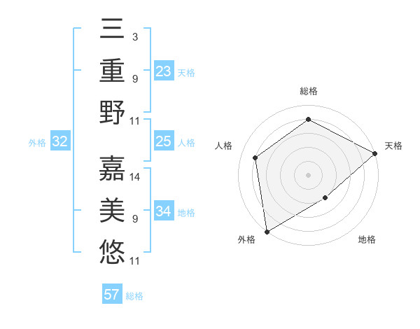 三重野 嘉美悠さんを姓名の画数から五運を鑑定