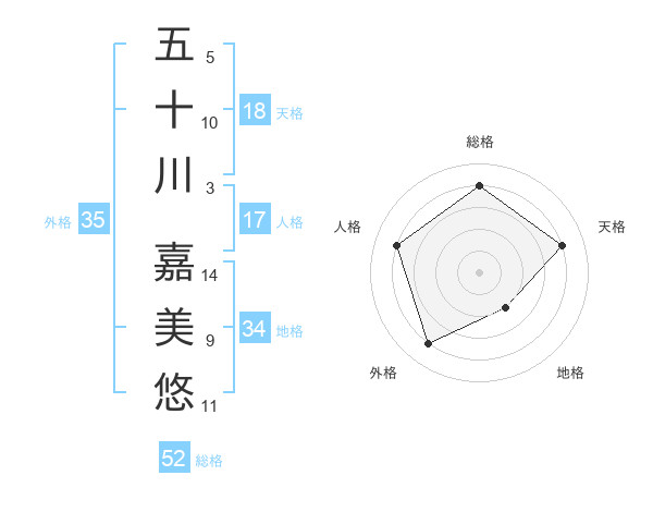 五十川 嘉美悠さんの総格は52画の4点