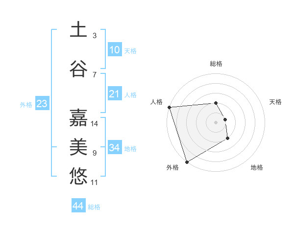 土谷 嘉美悠さんを姓名の画数から五運を鑑定